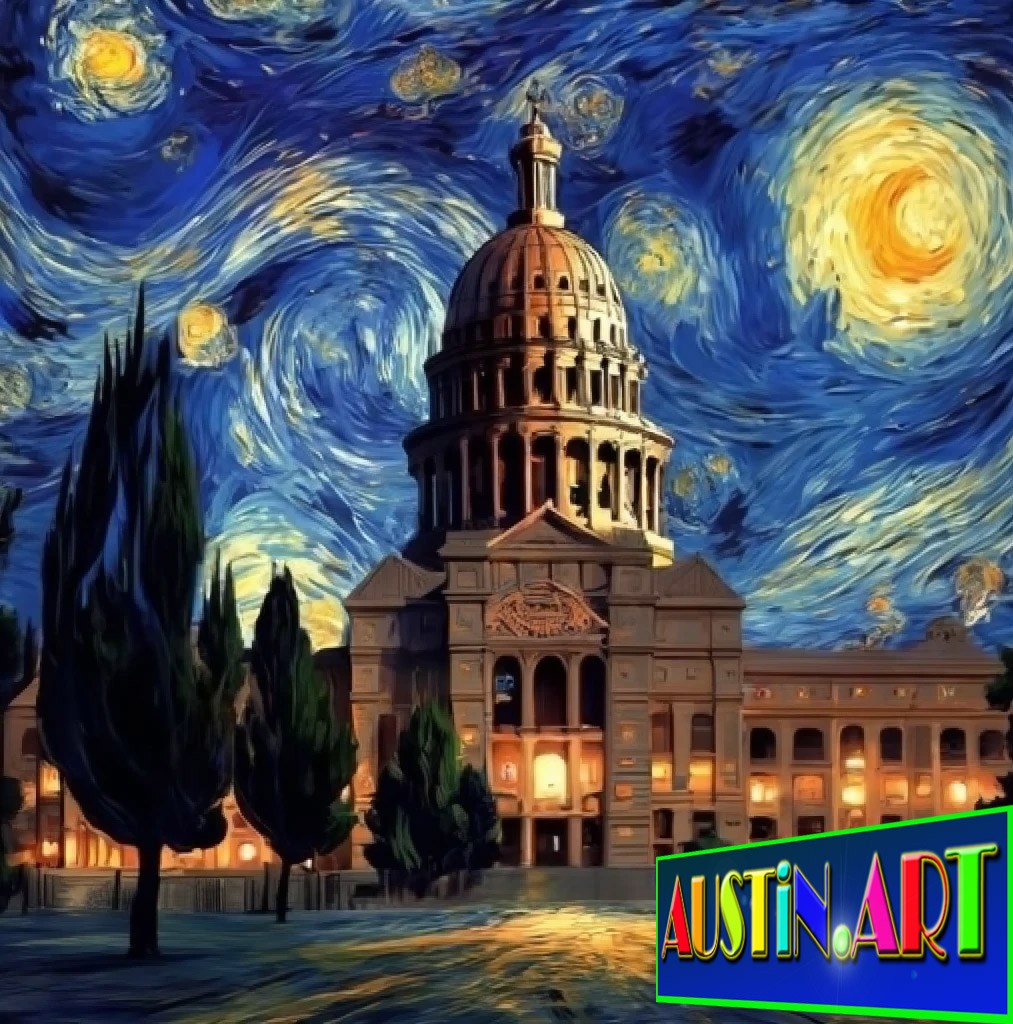 Scroll Down The Austin Art Exhibition of The Austin Capitol Building Traveling Around The World! By Austin Artist DAPACU